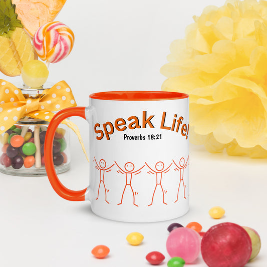 Speak Life! Proverbs 18:21 Scripture Coffee Mug with Color Inside